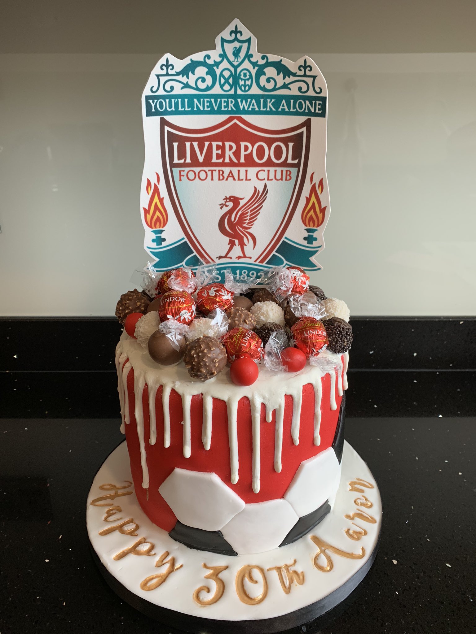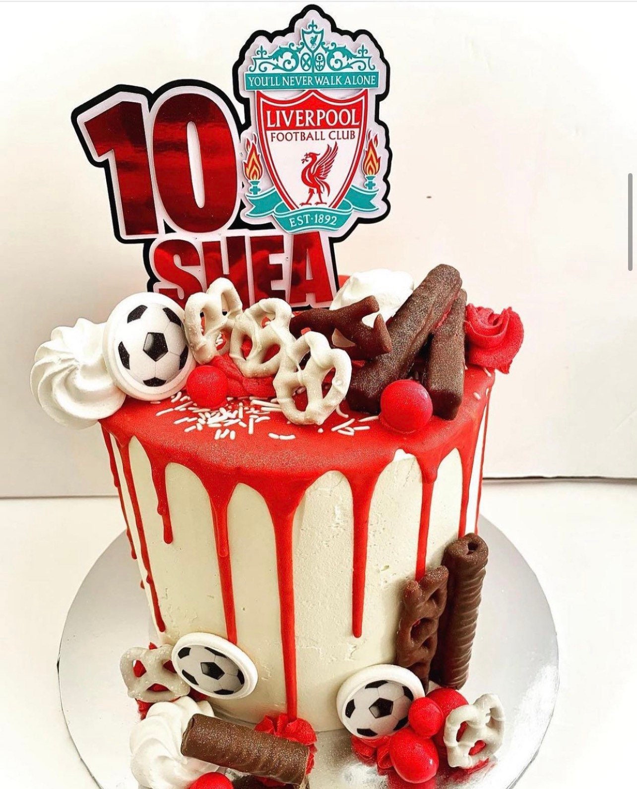 Uzivatel Valentina Evangelou Na Twitteru A Football Themed Birthday Cake For An Avid Liverpool Fan Vanilla Sponge With Sugarandcrumbs Velvet Vanilla Buttercream Covered In Beau Icing And A Bright White Chocolate Drip